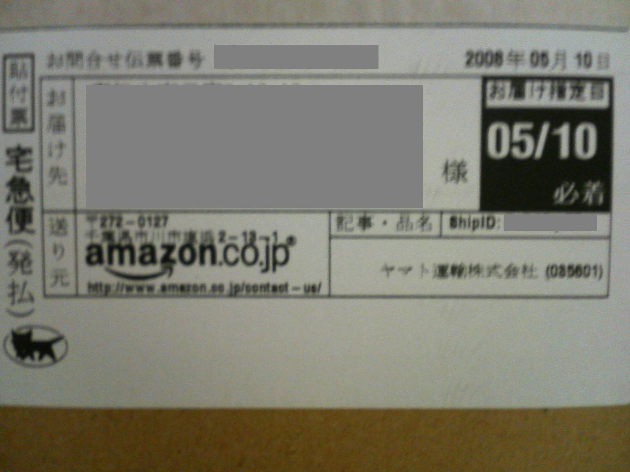 ヤマト運輸については、Amazon以外の荷物から倣えば、