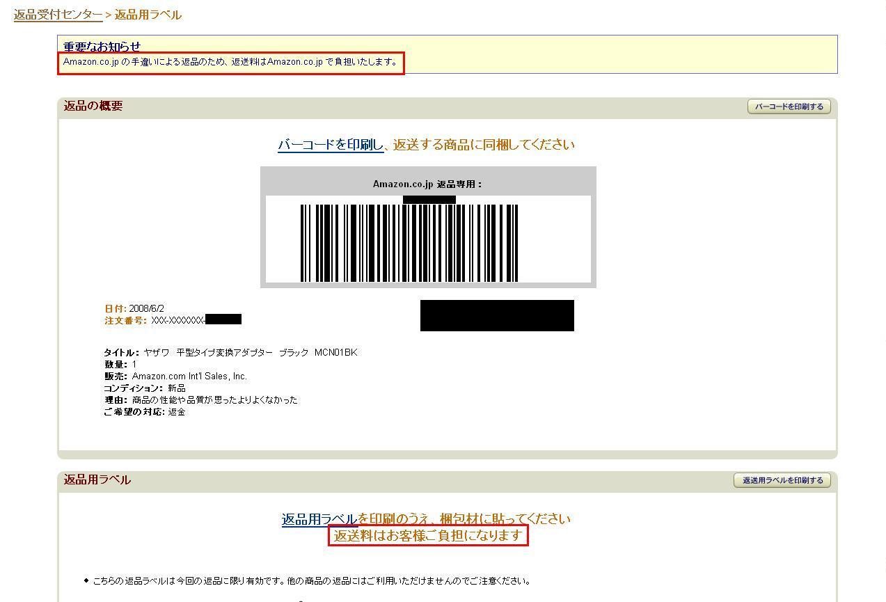 一方では、Amazonの手違いなので、返送料はAmazonが負担するとあり、
