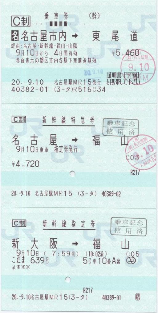 新幹線の特急券ですが、名古屋→新大阪は 指定券無しなので、