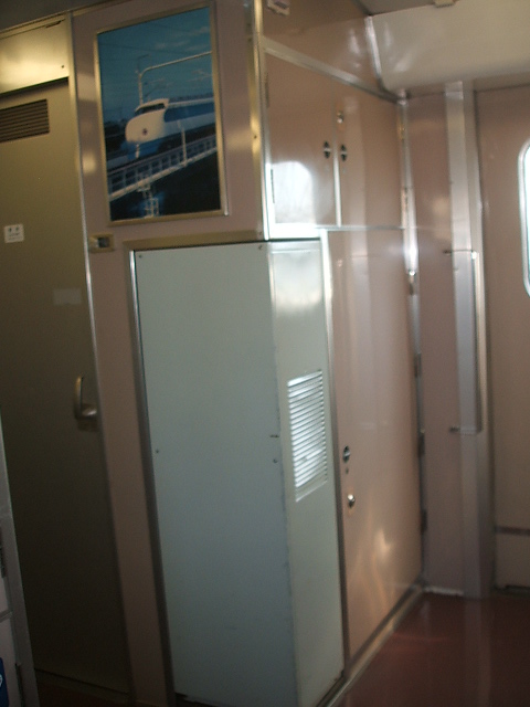 右は、3号車にあった車販コーナーです。営業はしていませんが、スペースは残されています。