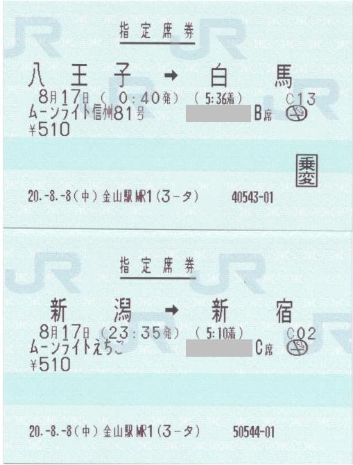 8月17日 0:40 八王子より ムーンライト信州81号乗車