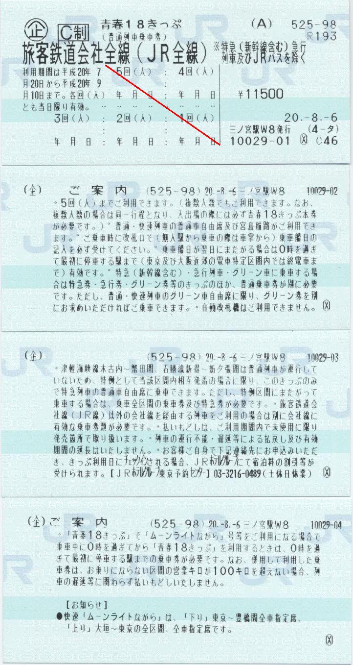 また、昨年夏にはJR東、東海、九州の3社(すべて窓口)で青春18きっぷを購入しましたが、商品番号は全てこの525-98でしたので、