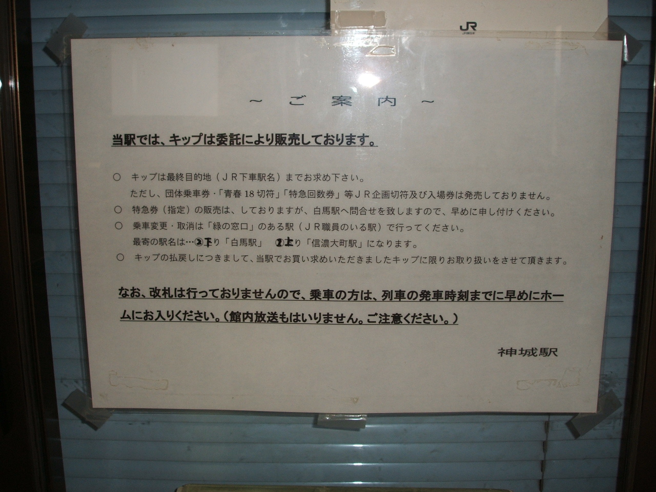 みどりの窓口ではないのですが、白馬駅に問い合わせの上指定券発行とは、