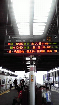 この快速急行は、次の厚木にも停車の上、海老名止まりになります。