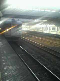階段上に6分前に入線の掲示がありましたが、2分前位でギリギリです。どうも、前を貨物が走ってる影響っぽい。
